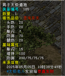 | 先天灵宝 | 身防:50 躲闪:5 头防:10 手防:10 腿防:10 |